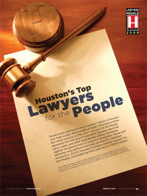 Lawyers in 2008, one of Houston's Top Lawyers for the People in 2009 and one of